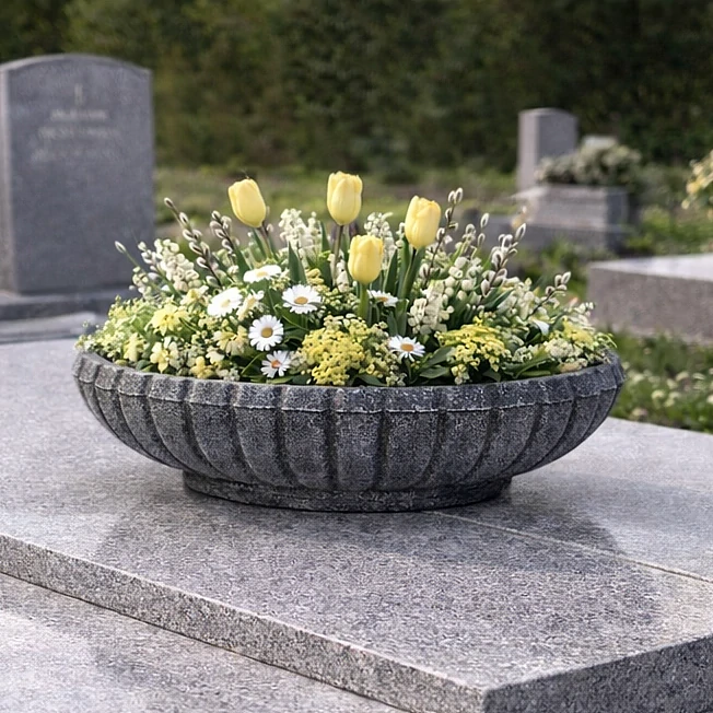 Květináč Margareta L je vhodný pro umístění přímo na mramorové desky hrobů na hřbitovech. Je určen k výsadbě vytrvalých a hustých květin, sukulentů a k aranžování suchých rostlin. Dle ročního období můžete zvolit živé rostliny, nebo květináč vyzdobit třeba sváteční deorací.