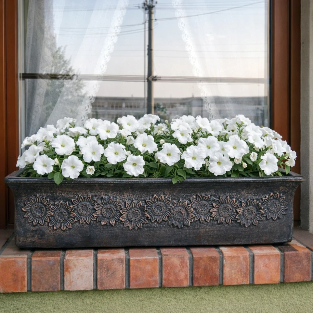 Oblíbený květinový truhlík Planika dodá okouzlující nádech jakékoli terase či zahradě. Je k dispozici ve třech velikostech a dvou barvách - šedé a bronzově hnědé.