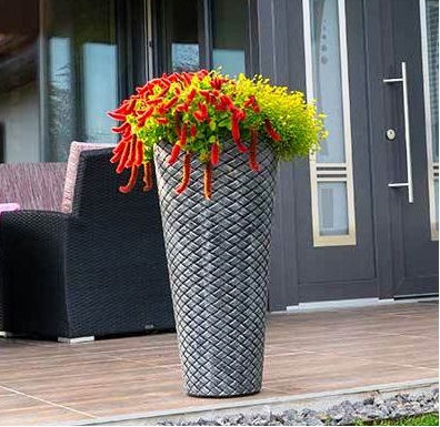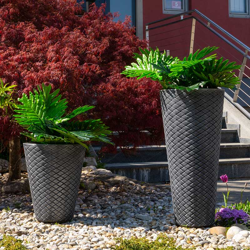 Elegantní květináč Latino je k dispozici ve dvou velikostech a dvou barvách - bronzově hnědé a šedé. Díky nízké hmotnosti se snadno přenáší, je lehký a přitom robustní, snadno se udržuje, je odolný proti nárazu. Květináč Latino je krasný doplněk terasy.