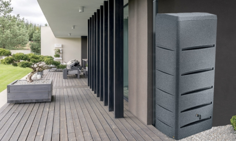 - Stylový zásobník na dešťovou vodu TOWER STONE 720 l, v barvě šedý granit