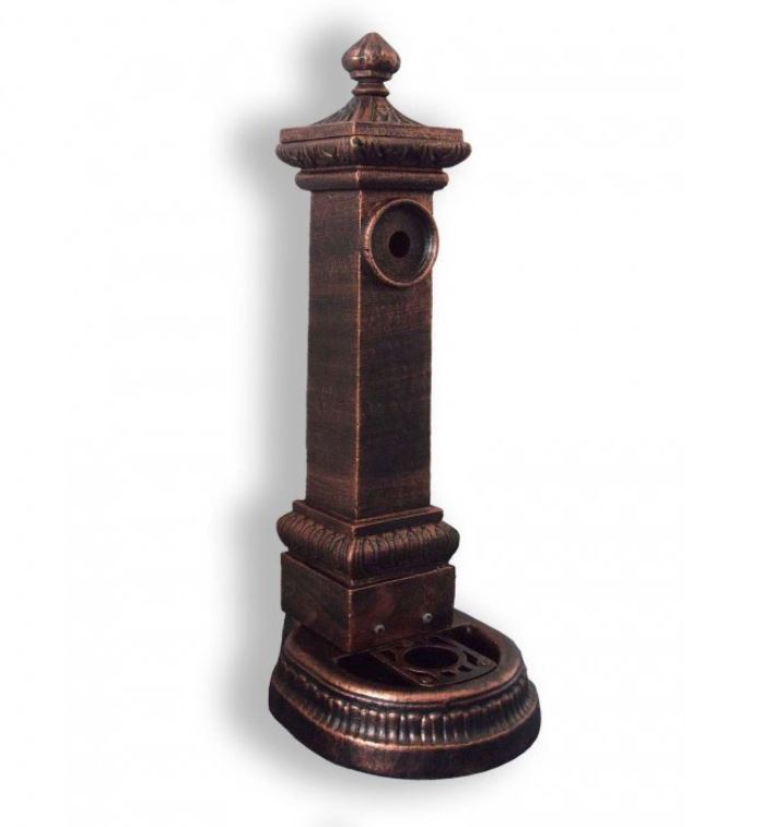 Tento vodovodní sloupek je vyroben z litiny a má měděnou patinu, která mu dodává zajímavý vzhled. Vodovodní soupek je nejen praktickým prvkem, ale také skvělou ozdobou zahrady.