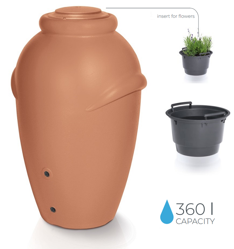 Oblíbený Sud na vodu AQUACAN 360 litrů přináší nejen vysokou praktičnost, ale i velmi elegantní design, inspirován uměním starověkého Řecka. Tento stylový a funkční sud je ideální volbou pro ty, kteří hledají spojení estetiky s efektivním využitím dešťové vody.