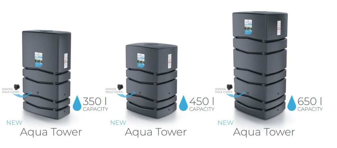 Moderní tvar nádrže na dešťovou vodu s hladkým povrchem a členitým designem, skvěle doplňuje architekturu moderního domu. Aqua TOWER poskytuje účinný systém zadržování a skladování dešťové vody, kterou lze poté dále využít pro zavlažování zahrady nebo záhonů.