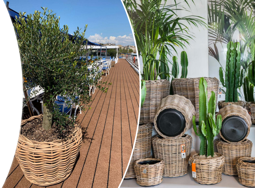 Vnitřní vložka květináče je vyrobená z recyklovaného plastu, který pochází z indonéských pobřežních oblastí. Vložka nemá otvory, což je ideální pro interiérové použití. Pro venkovní použití lze do vložky vyvrtat otvory pro odtok přebytečné vody. Ideálně se hodí do zahrad a na terasy, protože proutí nepřichází do styku s venkovními povrchy.