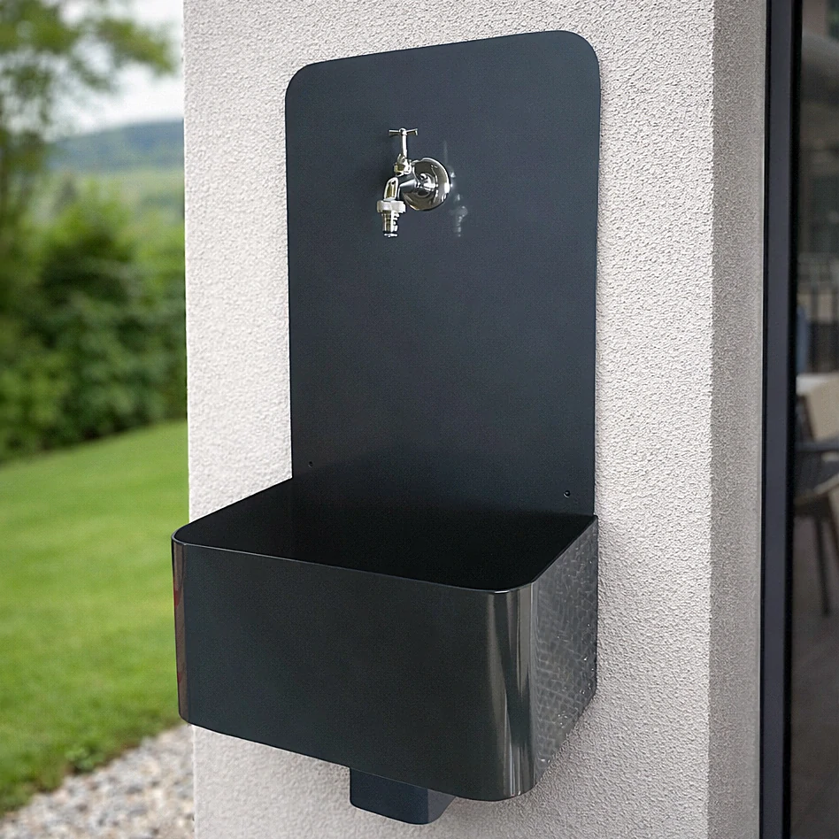 Elegantní zahradní umyvadlo v moderním provedení kombinuje praktičnost s designem.Vyrobeno z kvalitního litého hliníku, který je odolný vůči povětrnostním vlivům, korozi a UV záření. Díky tomu je vhodné pro celoroční venkovní použití. Hodí se do moderních i klasických zahrad, na terasy či k domům.