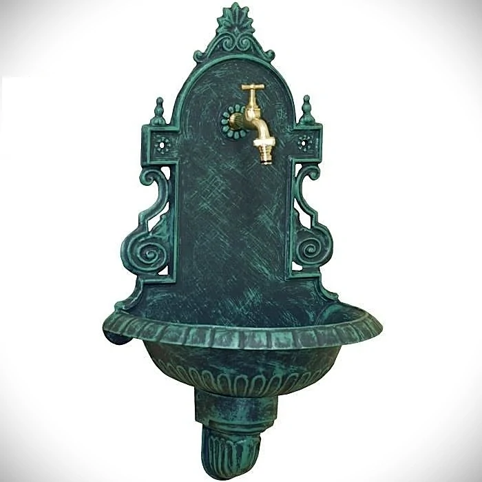 - Zahradní umyvadlo VERONA 66 cm – ze slitiny hliníku s kohoutkem, antická zelená
